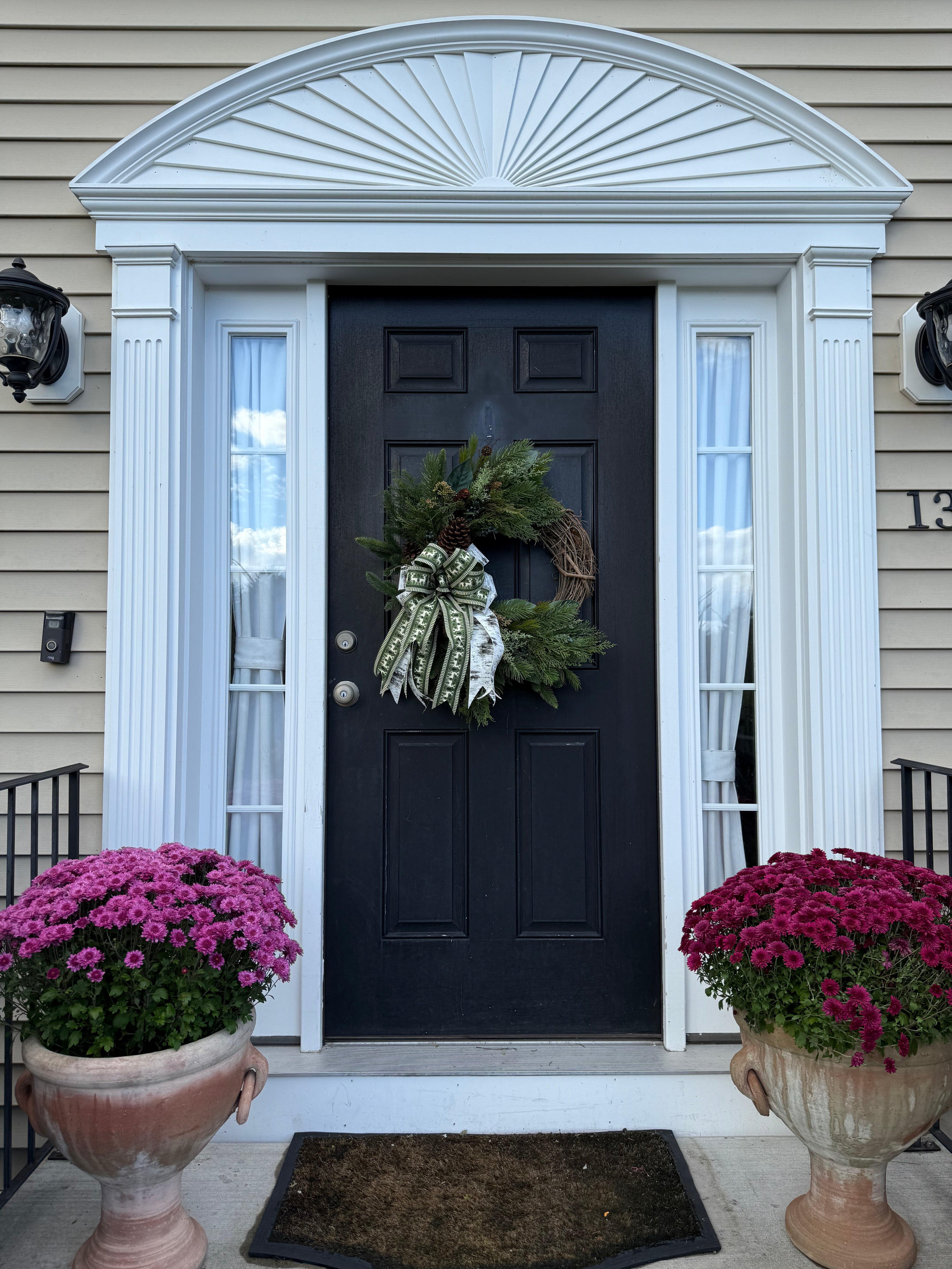 This winter grapevine wreath is carefully crafted to greet your guests with your personal style. Monogramming is available as well.